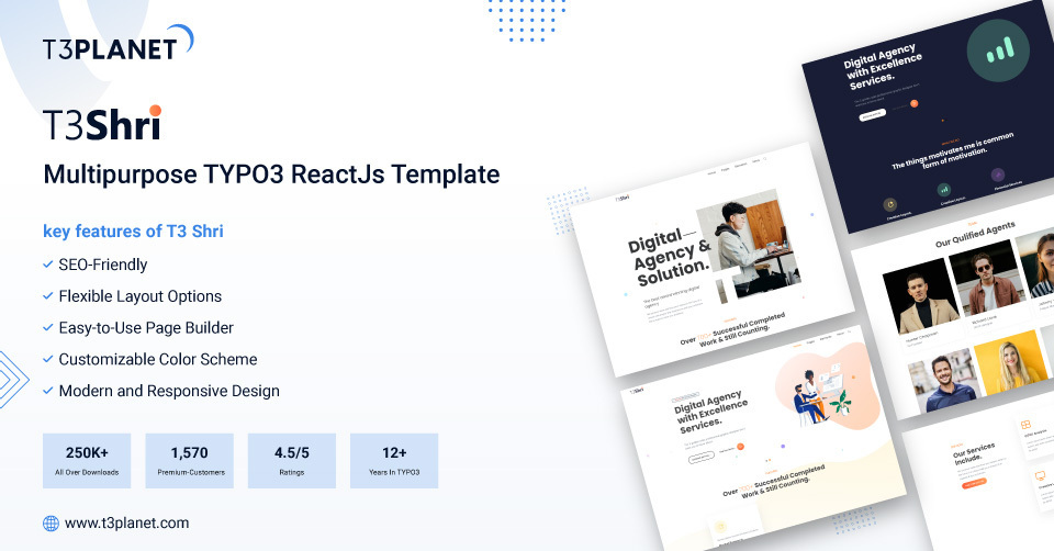 T3 Shri is fully compatible with the latest version of TYPO3, ensuring that your website is always up-to-date and secure.